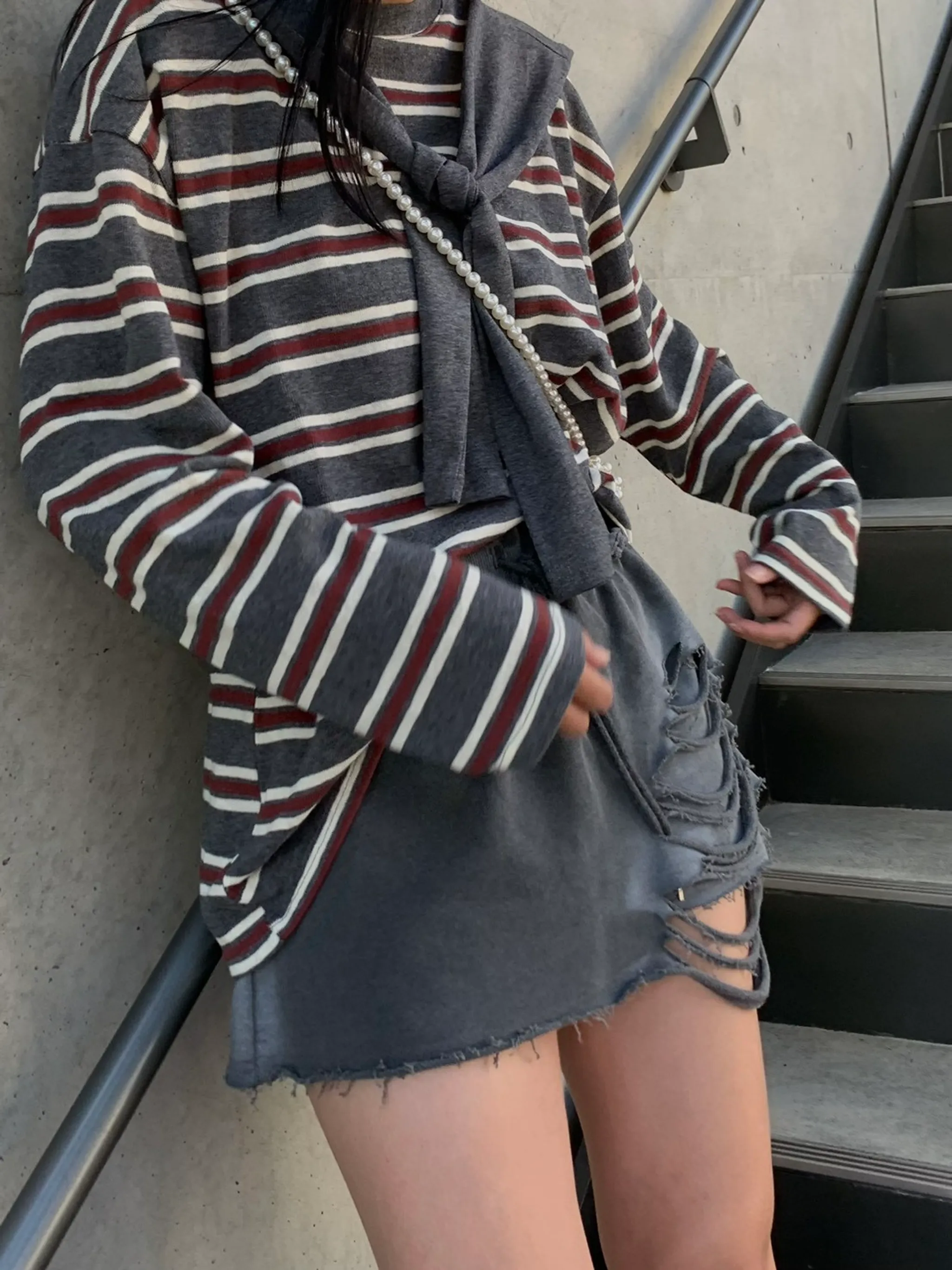 夾心吐司🍞柔軟條紋上衣(附披肩)