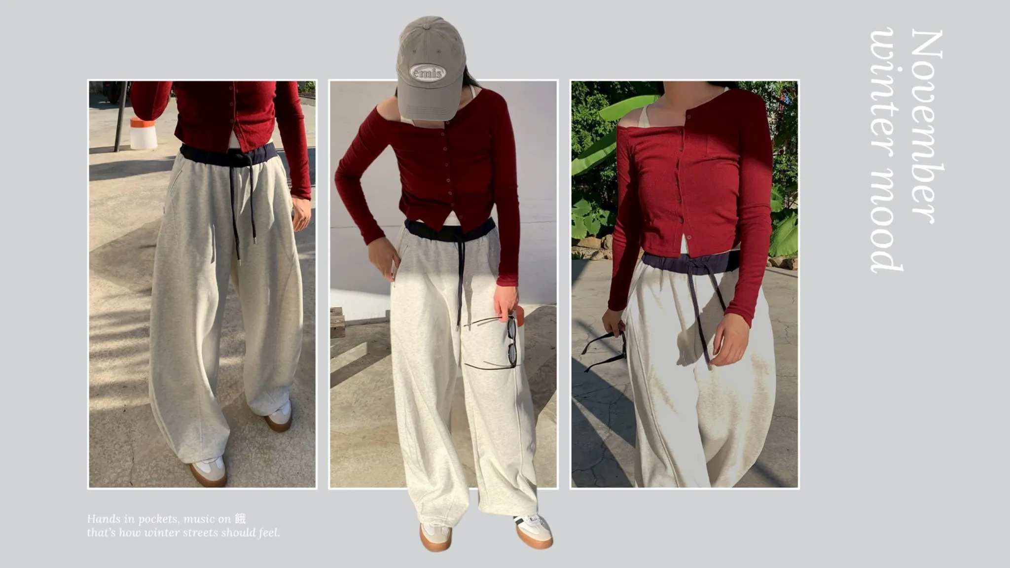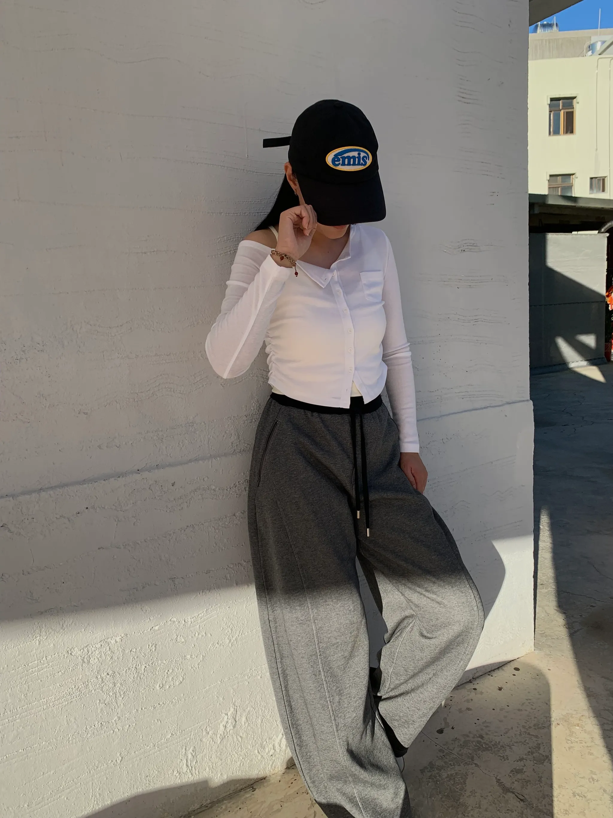 (熱銷款!)灰色控,前車線慵懶抽繩落地褲