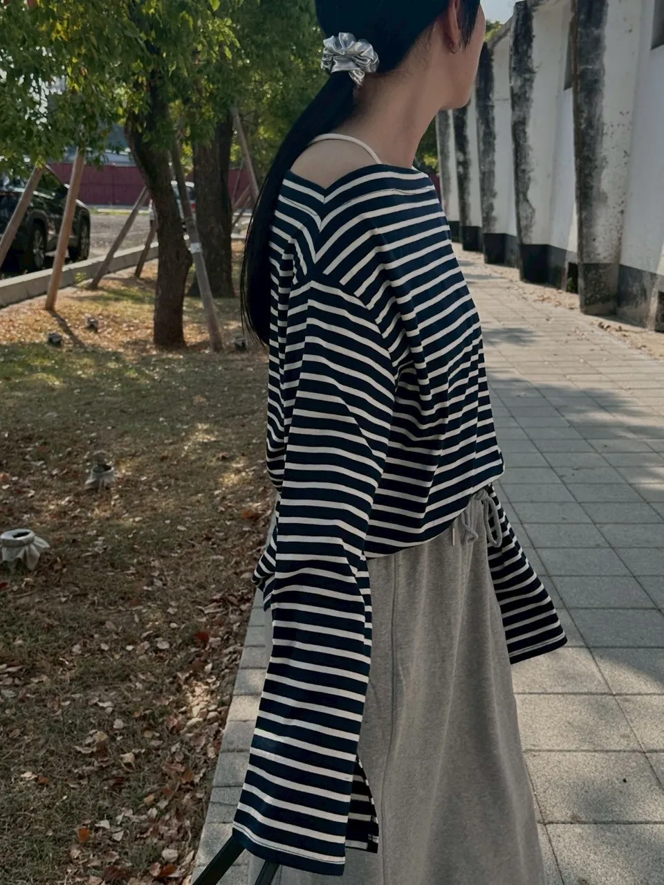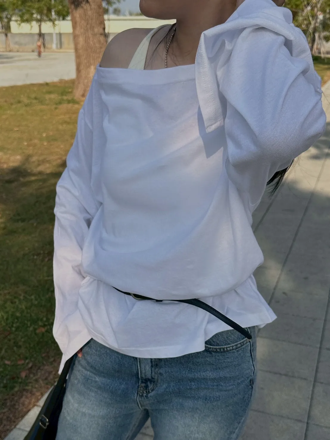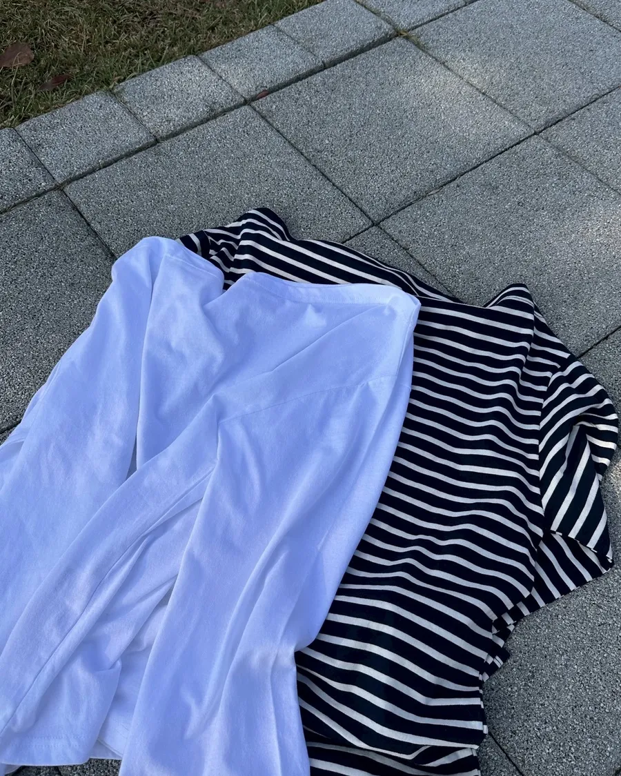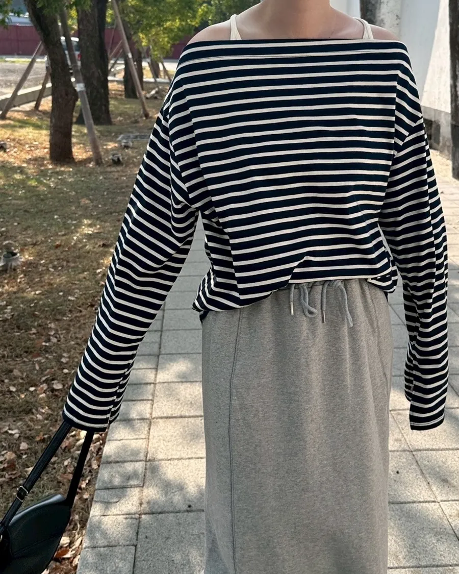 慵懶微辣,一字領棉質上衣