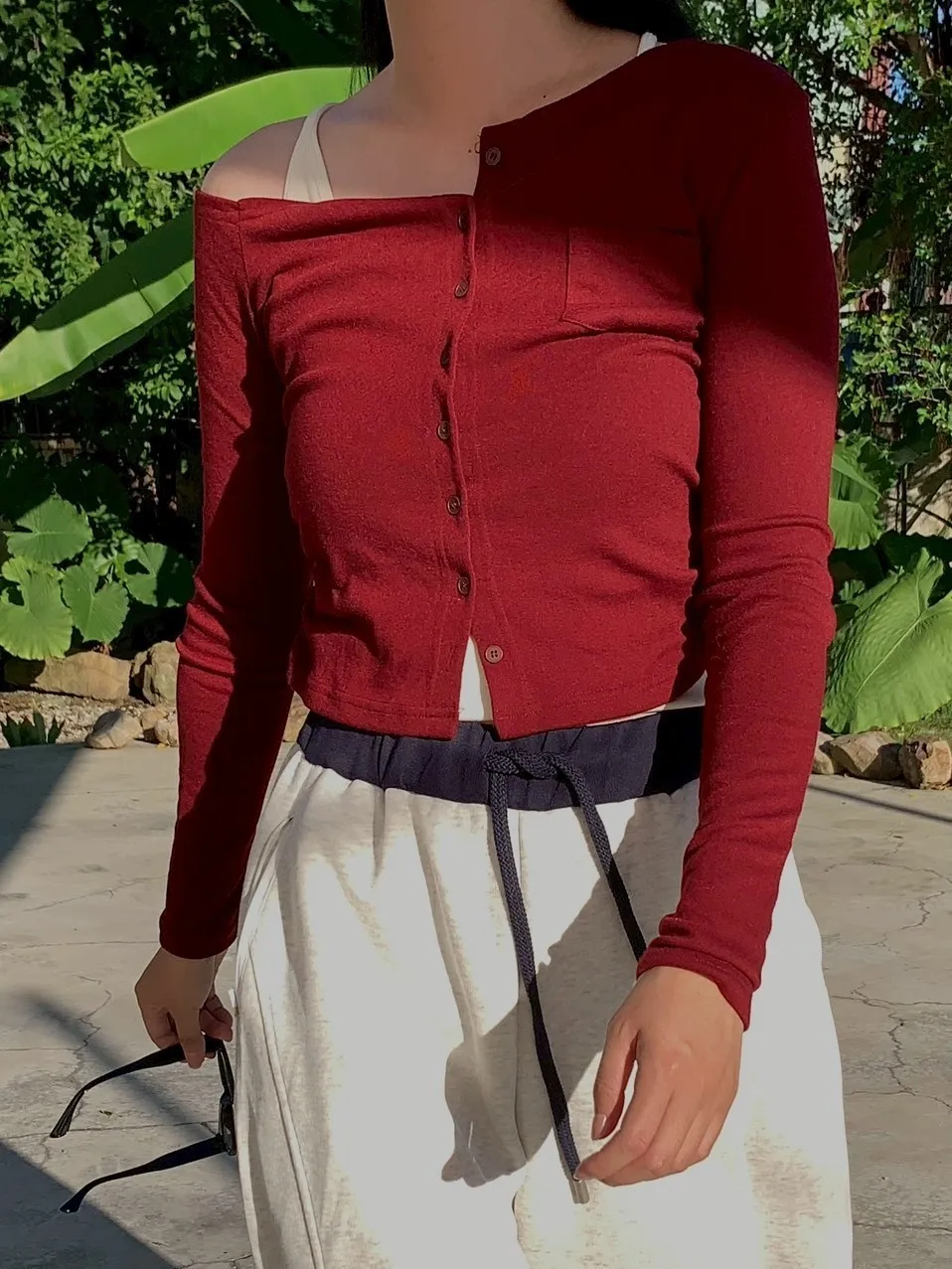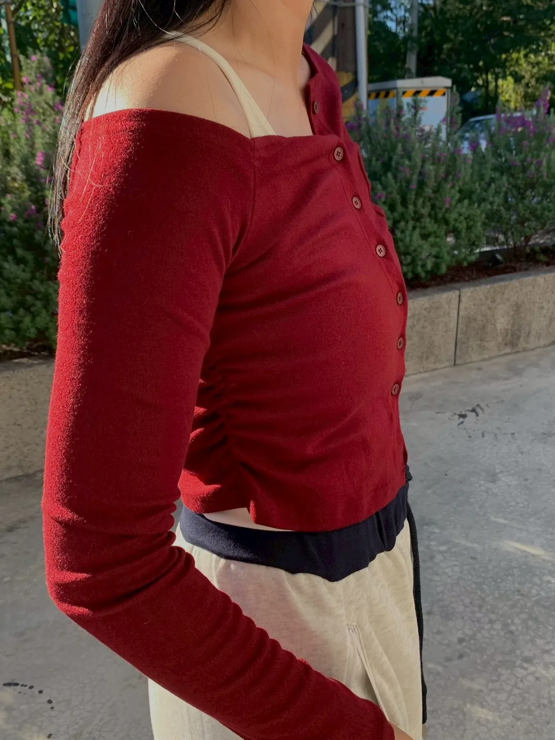 🍂初秋斜肩假兩件上衣